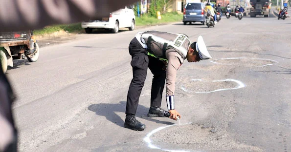Untuk Keselamatan Pengendara Jelang Nataru, Polres Gresik Tandai Jalan Berlubang